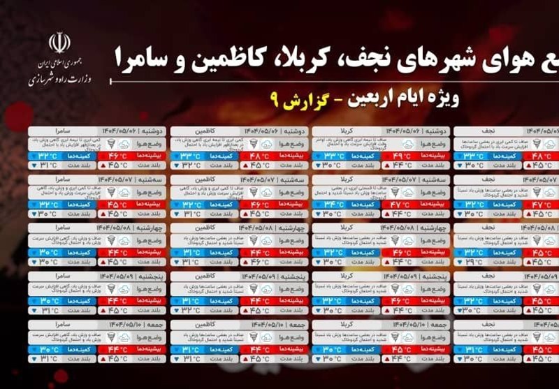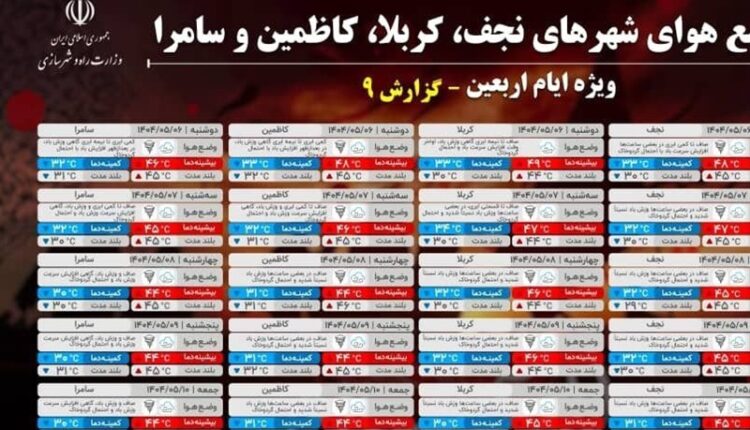 پیش‌بینی ۵ روزه هواشناسی شهرهای مرزی ایران و عراق