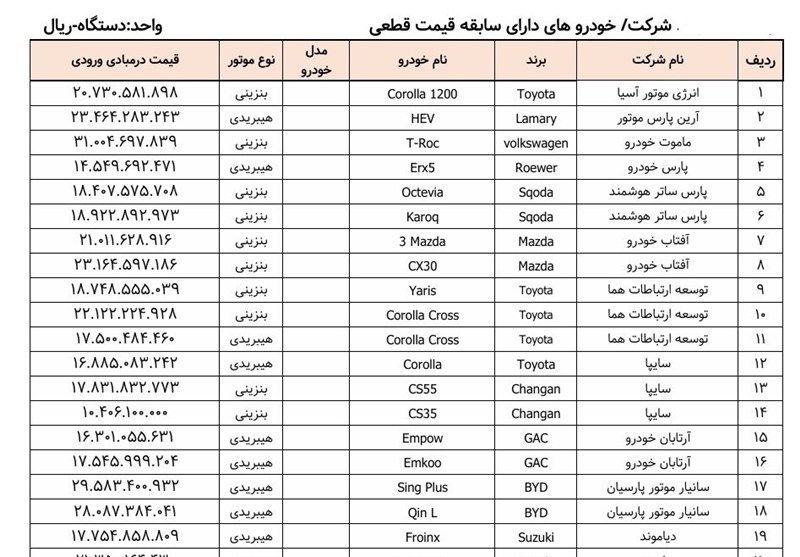 ۴- قیمت قطعی خودروها پس از ارایه کلیه مستندات و مدارک مثبته توسط سازمان حمایت مصرفکنندگان و تولیدکنندگان محاسبه و متعاقباً اعلام خواهد شد.