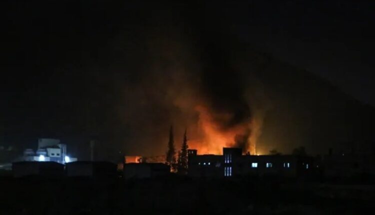 این منبع از شنیده شدن صدای انفجارهای قوی خبر داد که منطقه را تکان داده است و زبانه های آتش هم از اماکن بمباران شده برخاسته است.