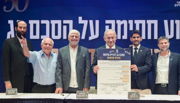 روز پنجشنبه، ۲۰ شهریور 1404 (11 سپتامبر 2025)، نتانیاهو در مراسمی که با حضور وزرای تندرو کابینهاش از جمله بتسلائل اسموتریچ، وزیر دارایی و از حامیان اصلی الحاق کرانه باختری، برگزار شد، طرحی را امضا کرد که به موجب آن ساختوساز گسترده در منطقه راهبردی E1 آغاز میشود. این منطقه با مساحتی بالغ بر 12 کیلومتر مربع، شهرک معله آدومیم را به طور کامل به قدس اشغالی متصل میکند.
