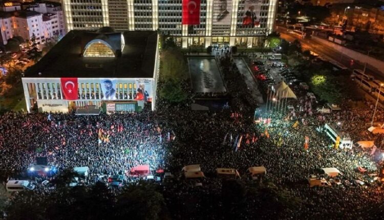 به گزارش گروه بینالملل خبرگزاری صابرین نیوز، به گفته منابع محلی، شب گذشته دهها هزار نفر معترض در مقابل شهرداری استانبول تجمع کردند، این تجمع در اعتراض به بازداشت شهردار استانبول اکرم امام اوغلو برگزار شد.
