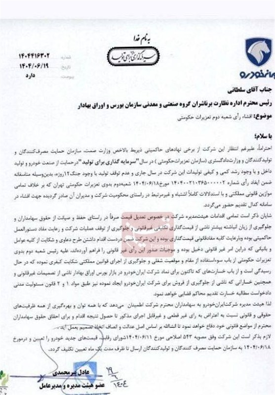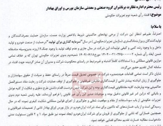 ایران خودرو در واکنش به رای تعزیرات در کدال به شرح نامه زیر شفاف سازی کرد:
