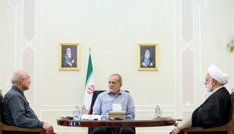 آقایان مسعود پزشکیان، حجتالاسلام غلامحسین محسنیاژهای و محمدباقر قالیباف آخرین مسائل و امور کشور را بررسی و مرور کردند.