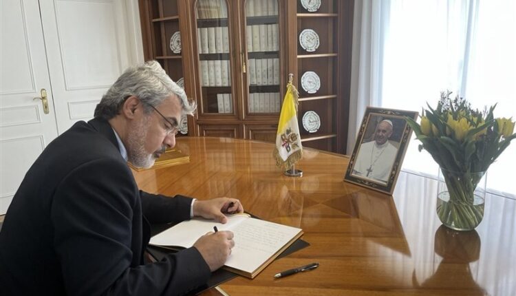 به گزارش گروه سیاست خارجی خبرگزاری صابرین نیوز، علی بحرینی سفیر و‌ نماینده دائم جمهوری اسلامی ایران نزد دفتر سازمان ملل متحد در ژنو روز پنج شنبه 4 اردیبهشت 1404 طی حضور در نمایندگی دائم واتیکان در ژنو، دفتر یادبود درگذشت پاپ فرانسیس پیشوای فقید کاتولیک های جهان را امضاء کرد.
