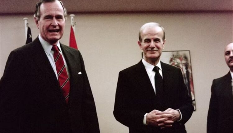 آندری گرومیکو در کنار عبدالحلیم خدام؛ وزرای خارجه وقت شوروی و سوریه