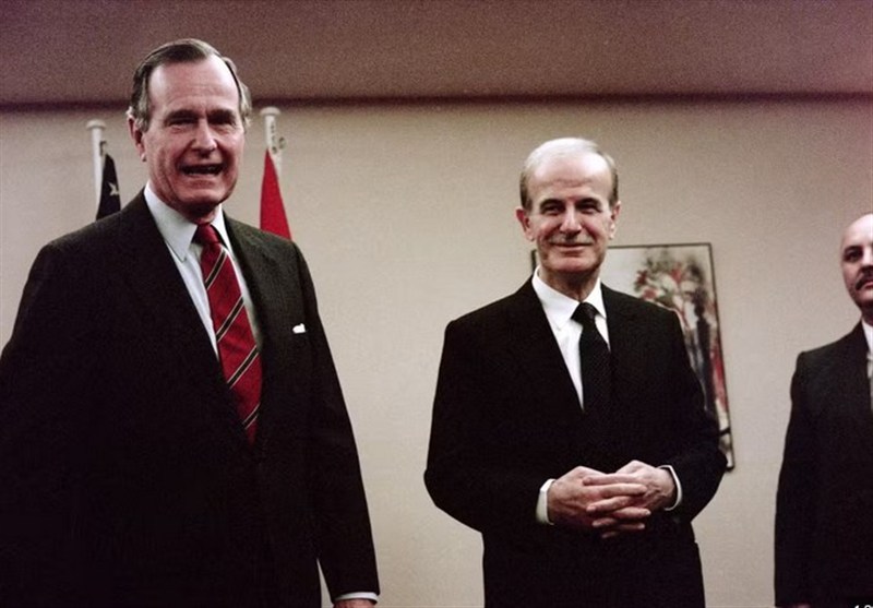 هنری کیسینجر (وزیر خارجه وقت آمریکا) در دیدار با حافظ اسد در دمشق