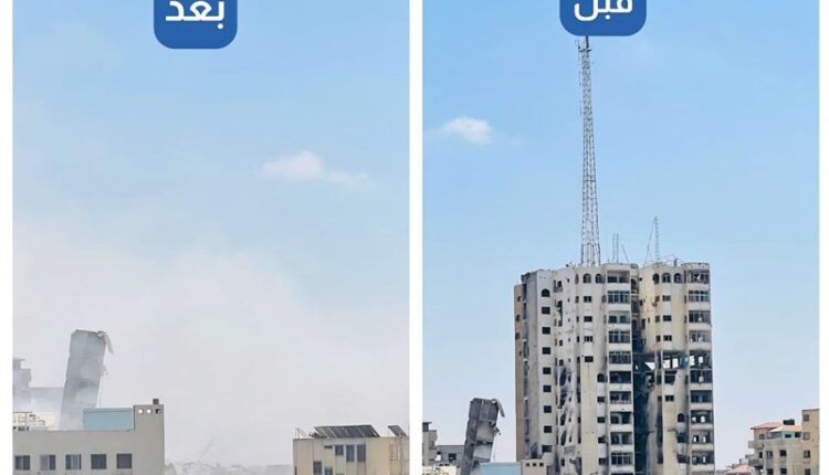 روز گذشته برج مسکونی مشتهی در غرب شهر غزه در پی هشدار وزیر جنگ رژیم صهیونیستی با سه‌ موشک هدف قرار گرفت و به طور کامل تخریب و به تلی از خاک تبدیل شد.