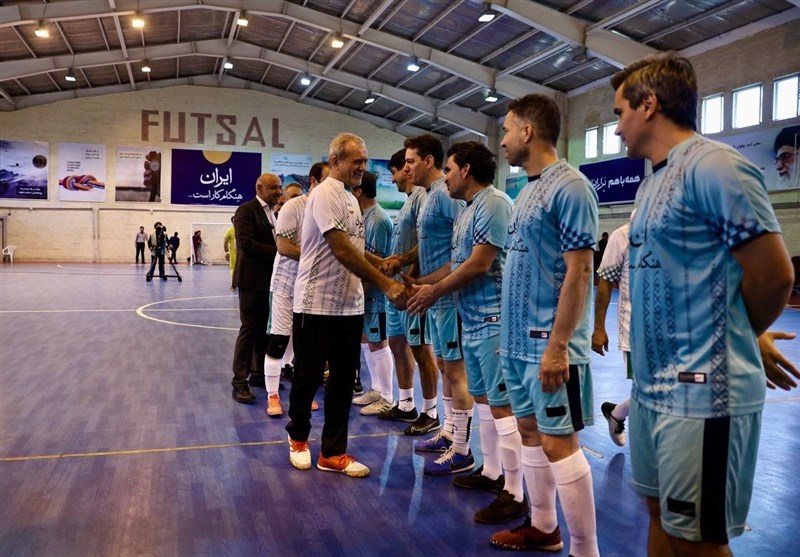 در جریان این دیدار مسعود پزشکیان رئیسجمهور با پیراهن شماره 14 به تیم کارگری پیوست. سرپرست تیم کارگران احمد میدری، وزیر تعاون،کار و رفاه اجتماعی است و سرپرستی تیم پیشکسوتان ایران را احمد دنیامالی، وزیر ورزش و جوانان برعهده دارد.