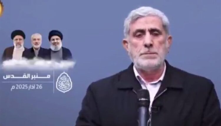 به گزارش خبرگزاری صابرین نیوز، سردار اسماعیل قاآنی، فرمانده نیروی قدس سپاه، طی سخنانی به مناسبت روز جهانی قدس گفت: درود و رحمت الهی بر روح بلند امام خمینی (رحمتالله علیه) که روز قدس را روز اسلام و حیات آن نامیدند و سلام و درود بر خلف صالح ایشان، حضرت امام خامنهای عزیز، که همچنان در مسیر نورانی امام راحل، پیشگام حمایت عملی از قدس شریف و جلودار امت اسلامی بوده و هستند.