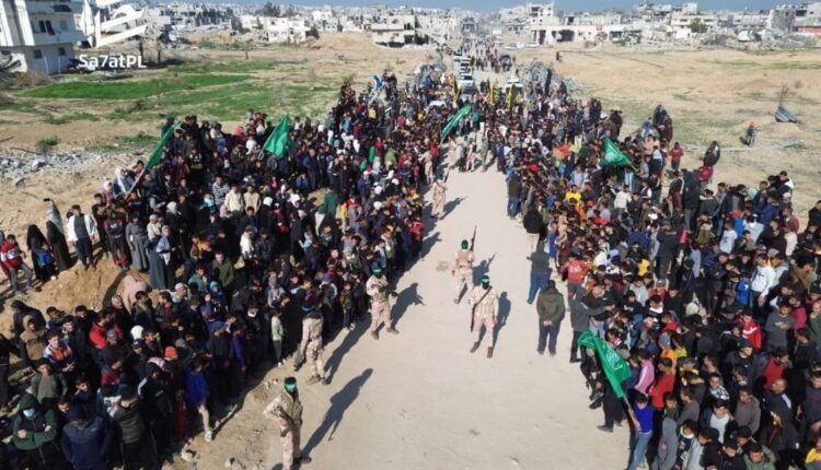 فلسطینیها به شکل گسترده از ساعات صبح مقابل منزل شهید یحیی سنوار در خان یونس واقع در جنوب نوار غزه، قبل از تحویل دو اسیر نظامی زن دیگر صهیونیست به نامهای «اربیل یهود» و «گادی موزیس» که نزد سرایا القدس شاخه نظامی جنبش جهاد اسلامی هستند تجمع کردهاند.