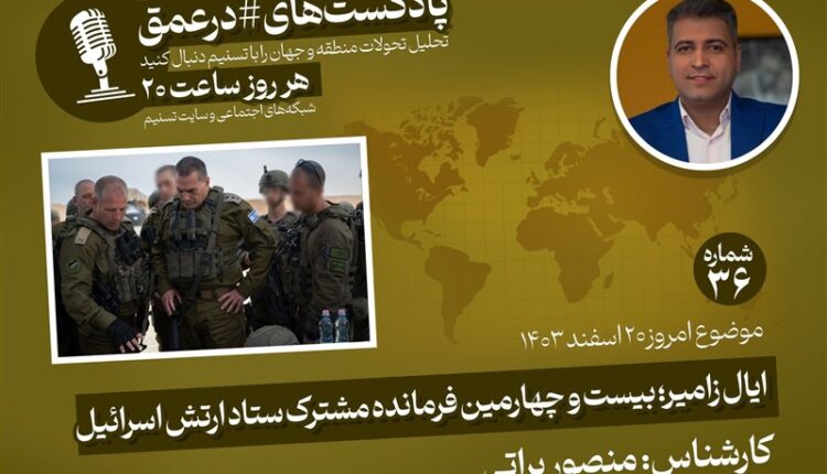 گروه بینالملل خبرگزاری صابرین نیوز ـ بیست و هشتمین شماره از پادکست «در عمق» که به بررسی مهمترین روندها، تحولات و همچنین شخصیتها در غرب آسیا میپردازد، روز یکشنبه 19 اسفند ماه 1403 ضبط شده و منتشر شد. در این اپیزود «منصور براتی» به بررسی سوابق «ایال زامیر» و چالشهایی میپردازد که وی به عنوان فرمانده جدید ارتش اسرائیل با آنها روبهروست.