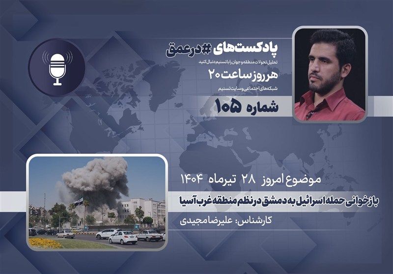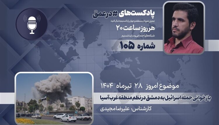 گروه بین‌الملل خبرگزاری صابرین نیوز ـ یکصد و پنجمین شماره از پادکست «در عمق» که به بررسی مهم‌ترین روندها، تحولات و همچنین شخصیت‌ها در غرب آسیا می‌پردازد، روز شنبه  28 تیر ماه 1404 ضبط و منتشر شد. در این شماره «علیرضا مجیدی» به بررسی حملات اسرائیل به سوریه می‌پردازد.
