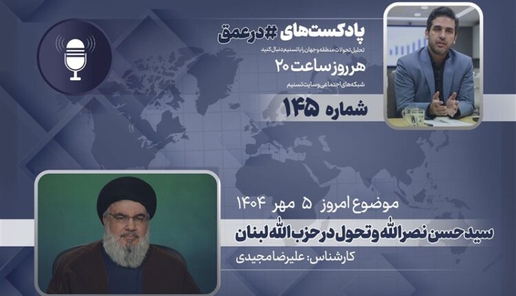 گروه بین‌الملل خبرگزاری صابرین نیوز ـ یکصدوچهل‌وپنجمین شماره از پادکست «در عمق» که به بررسی مهم‌ترین روندها، تحولات و همچنین شخصیت‌ها در غرب آسیا می‌پردازد، روز شنبه 5 مهر 1404 ضبط و منتشر شد. در این شماره «علیرضا مجیدی»، کارشناس مسائل غرب آسیا به سوال‌های در عمق درباره سید حسن نصرالله پاسخ می‌دهد. به طور کلی در ارزیابی عملکرد رهبران جنبش‌های نهضتی و حتی دولت‌ها، دو مؤلفه اساسی و تعیین‌کننده وجود دارد: