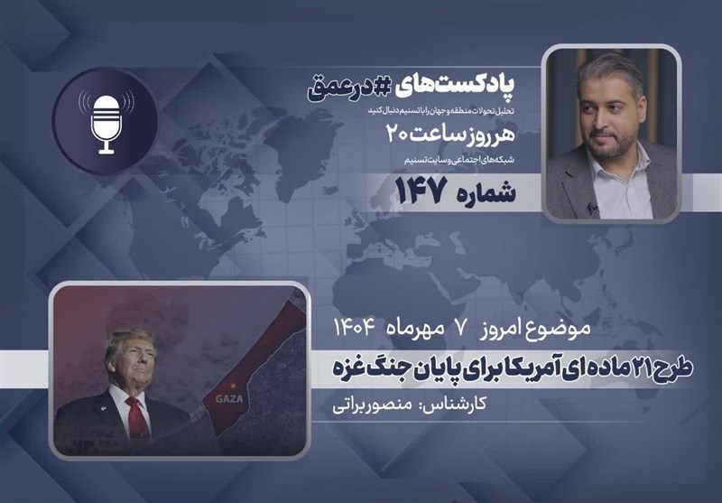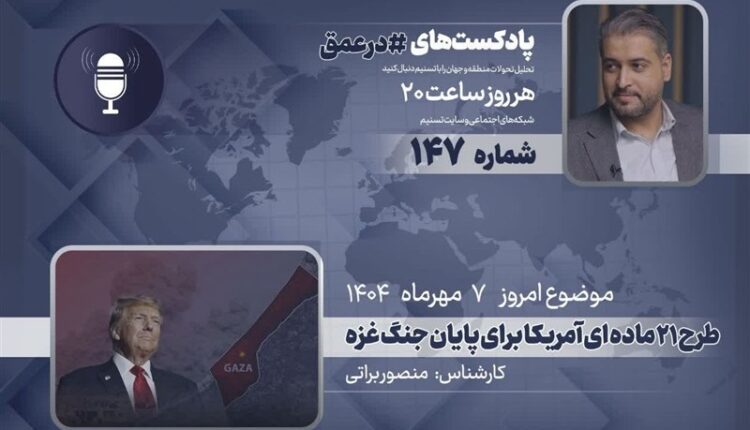 گروه بین‌الملل خبرگزاری صابرین نیوز ـ یکصدوچهل‌وهفتمین شماره از پادکست «در عمق» که به بررسی مهم‌ترین روندها، تحولات و همچنین شخصیت‌ها در غرب آسیا می‌پردازد، روز دوشنبه 7 مهر 1404 ضبط و منتشر شد. در این شماره «منصور براتی»، به جزئیات طرح جدید 21 ماده‌ای پیشنهادی آمریکا برای اتمام جنگ میان اسرائیل و حماس می‌پردازد.