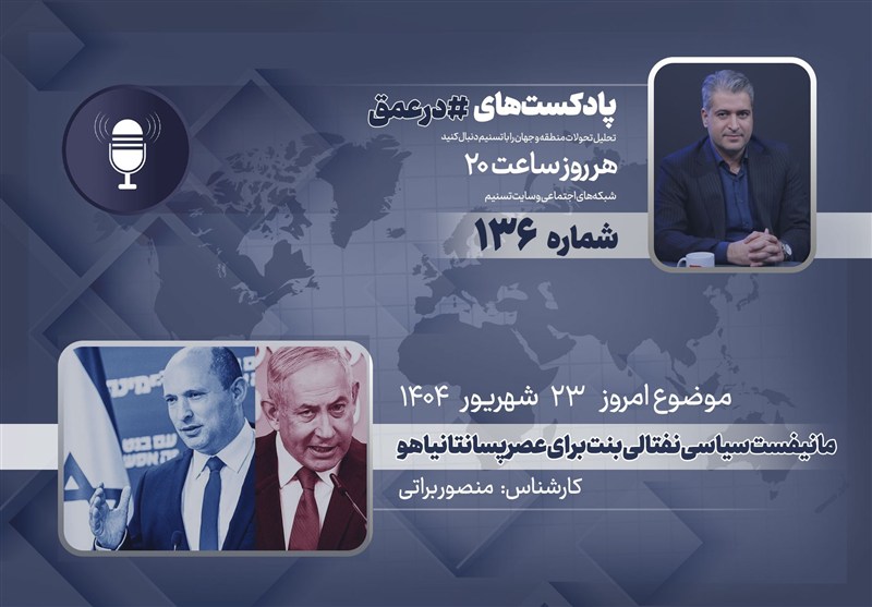 گروه بینالملل خبرگزاری صابرین نیوز ـ یکصد و سی و ششمین شماره از پادکست «در عمق» که به بررسی مهمترین روندها، تحولات و همچنین شخصیتها در غرب آسیا میپردازد، روز یکشنبه 23 شهریور 1404 ضبط و منتشر شد. در این شماره «منصور براتی»، کارشناس مسائل اسرائیل به بررسی مانیفست سیاسی نفتالی بنت برای شکست دادن بنیامین نتانیاهو و عصر «پسا بیبی» پرداخته است.