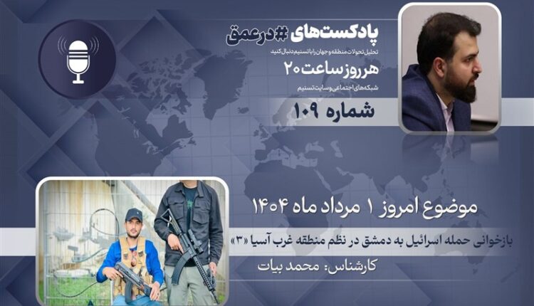 گروه بینالملل خبرگزاری صابرین نیوز ـ یکصدونهمین شماره از پادکست «در عمق» که به بررسی مهمترین روندها، تحولات و همچنین شخصیتها در غرب آسیا میپردازد، روز چهارشنبه 1 امرداد 1404 ضبط و منتشر شد. در این شماره «منصور براتی» میزبان «محمد بیات»، کارشناس مسائل خاورمیانه است.