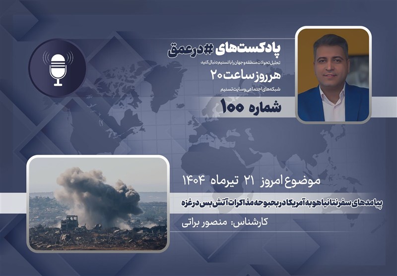 گروه بینالملل خبرگزاری صابرین نیوز ـ یکصدمین شماره از پادکست «در عمق» که به بررسی مهمترین روندها، تحولات و همچنین شخصیتها در غرب آسیا میپردازد، روز شنبه 21 تیر ماه 1404 ضبط و منتشر شد. در این شماره «منصور براتی»، به بررسی پیامدهای سفر بنیامین نتانیاهو به واشنگتن میپردازد.