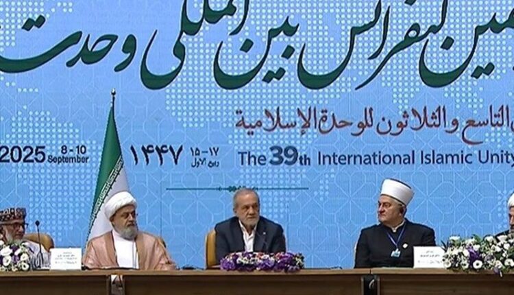 به گزارش خبرنگار حوزه دولت خبرگزاری صابرین نیوز، مسعود پزشکیان رئیسجمهور صبح امروز در آیین افتتاحیه سی و نهمین کنفرانس بین المللی وحدت اسلامی که در مرکز همایشهای بینالمللی نهاد ریاست جمهوری و با حضور میهمانان خارجی برگزار شد، طی سخنانی ضمن ابراز امیدواری برای ارتقای وحدت مسلمانان، بیان کرد: ما هر روز در نمازمان از خداوند میخواهیم که ما را به راه مستقیم الهی هدایت کند. پیامبر اکرم(ص) پس از ورود به مدینه، دستوری برادری را بین همگان صادر کردند و پیوند اخوّت برقرار شد.
