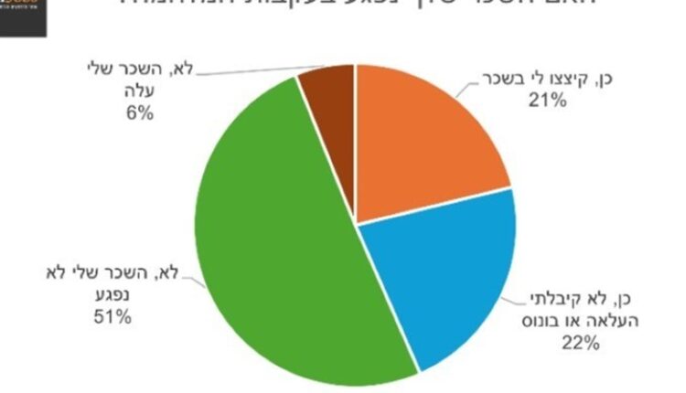 این پایش بر روی ۳۹۷ نفر از شاغلین در سرتاسر (فلسطین اشغالی) انجام گرفته و افرادی از شمال تا ایلات را شامل شده است، در این رابطه حدود یک پنجم از شاغلین (۲۱ درصد) اعلام کردند که حقوق آنها مستقیما کاهش پیدا کرده است، ۲۲ درصد هم هم تاکید کردند از زمان آغاز جنگ دیگر هیچ اضافه حقوق یا پاداش پایان سال به آنها اختصاص داده نشده است، نیمی از شاغلین شرکت کننده در این پایش هم اعلام کردند حقوق شان بدون تغییر باقی مانده و فقط ۶ درصد خبر دادند که اضافه حقوق شامل آنها شده است.