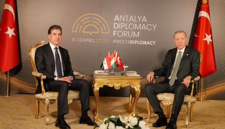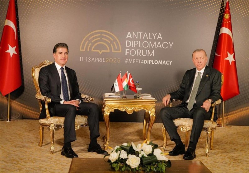 به گزارش گروه بین الملل خبرگزاری صابرین نیوز، نیچروان بارزانی رئیس اقلیم کُردستان عراق، غروب روز جمعه ۲۲ فروردین ماه در چهارمین اجلاس دیپلماسی آنتالیا، با «رجب طیب اردوغان» رئیس جمهور ترکیه دیدار و گفتوگو کرد.